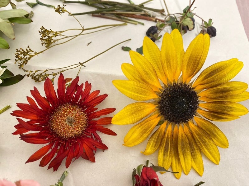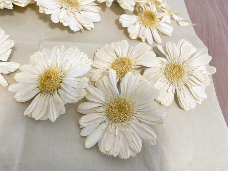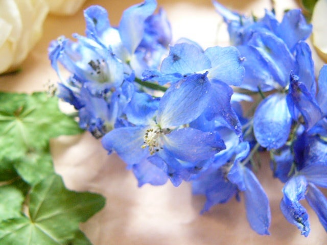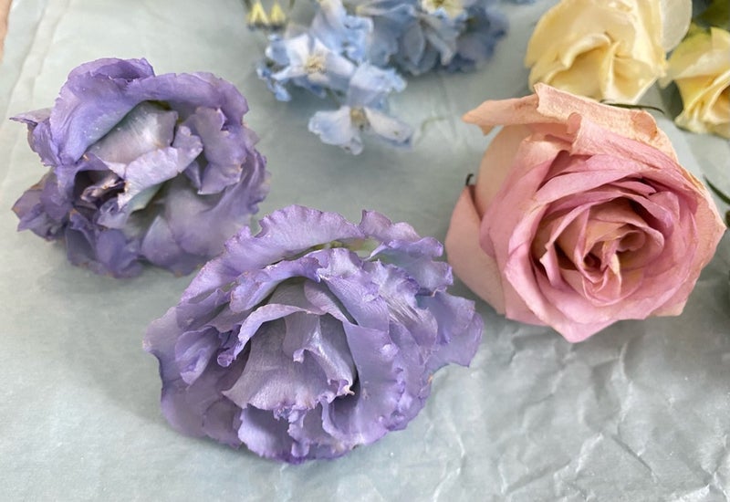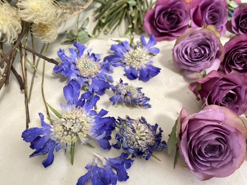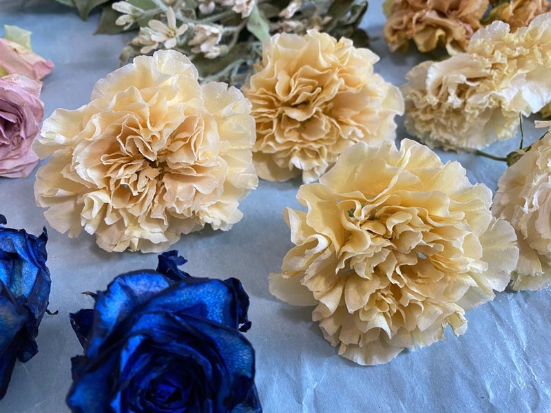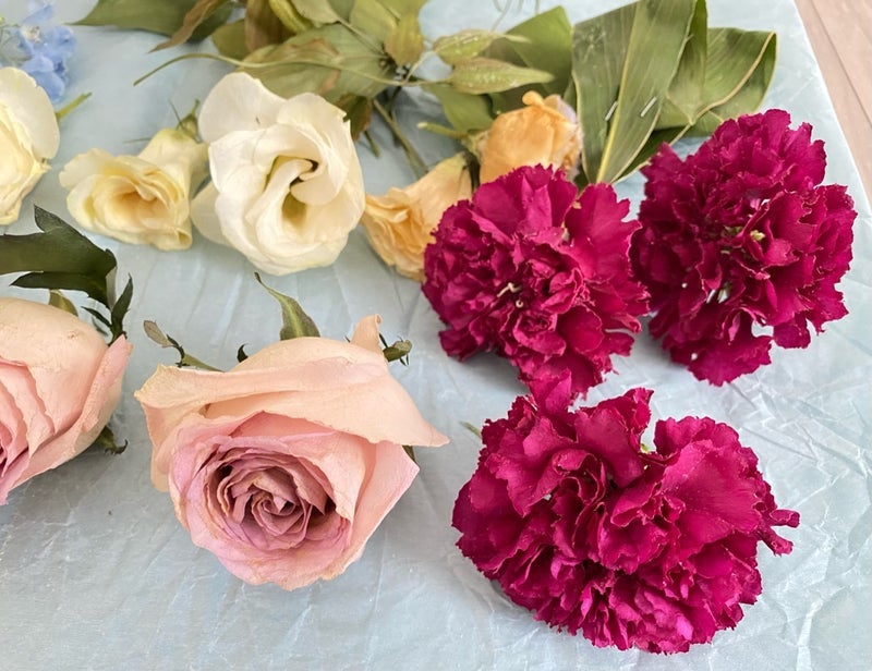 ドライフラワーに加工したお花の色味は少し濃い色合いになります。ドライ加工前とドライ加工後の見本写真です。