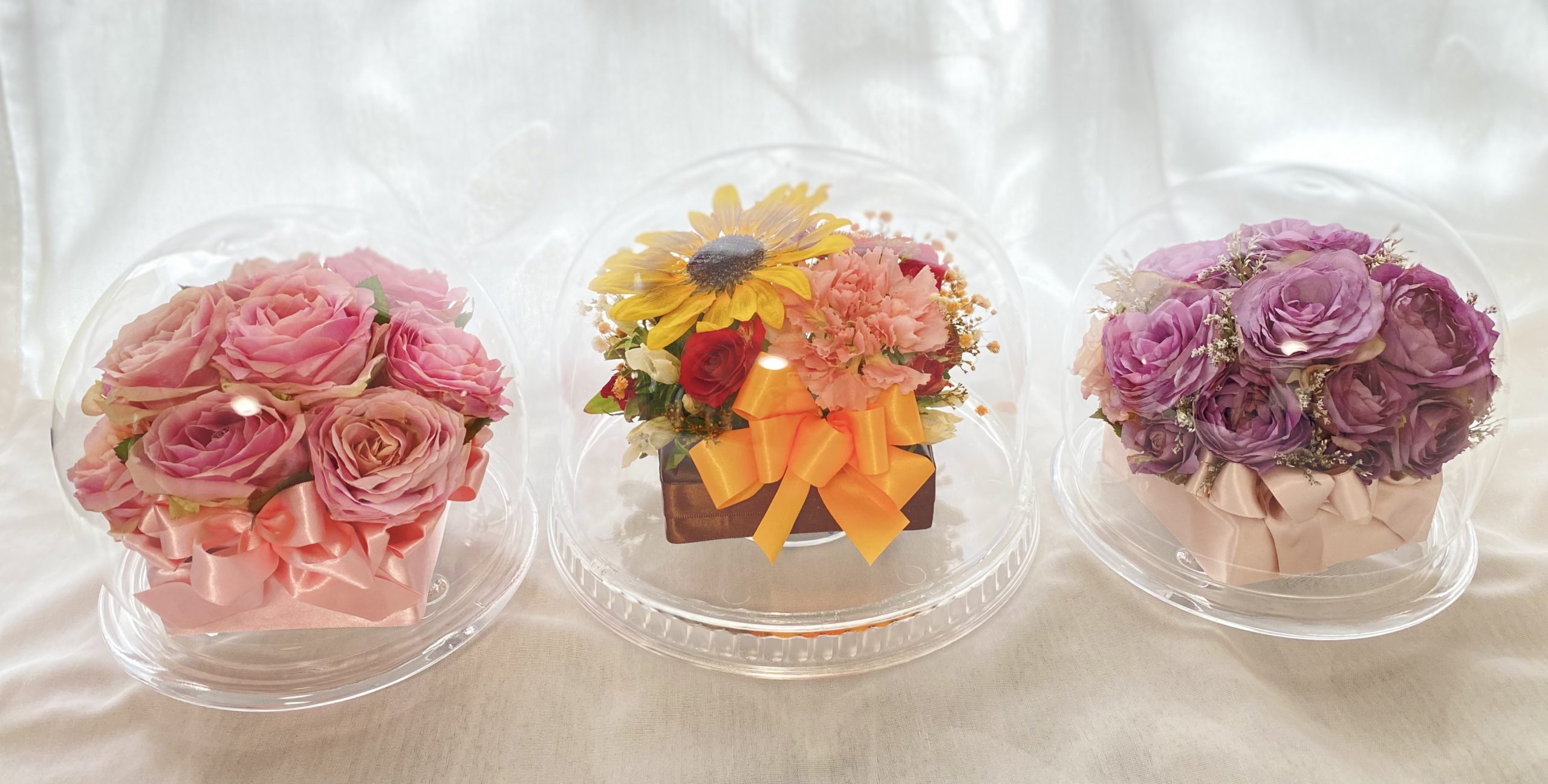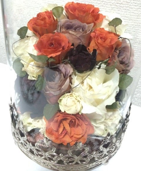 色味は少し濃い色味になりますのでご了承下さいませ。変色しやすいお花はアレンジメントに使用出来ませんのでご了承下さいませ。